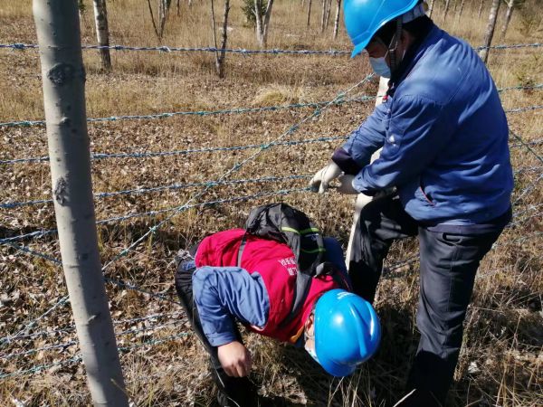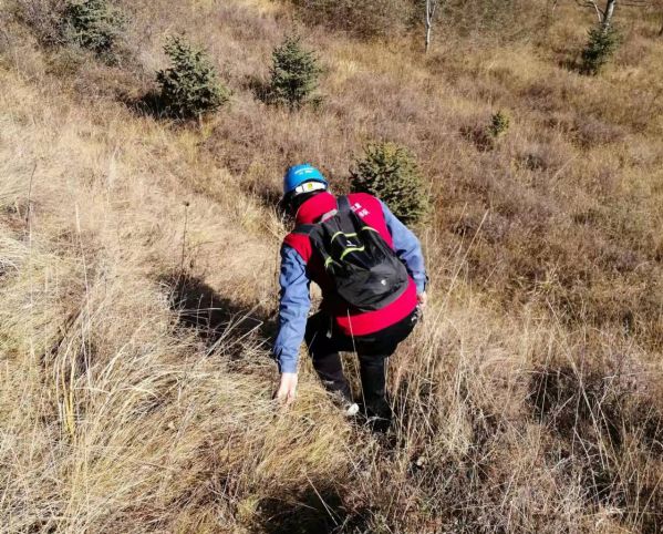 巡視過程中,國網(wǎng)青海電力三江源(黃化化隆)共產(chǎn)黨員服務(wù)隊分別五個小組,每組三人。各組隊員互相監(jiān)督,戴好安全帽、口罩,時刻做好安全防護措施。看似臨近的兩基桿塔,卻要越過一道山谷,攀爬兩個山坡才能到達,工作開始不久,汗水便打濕了他們的衣服。黑刺林和網(wǎng)圍欄是巡視路上的一道道難關(guān),他們把自己定義為“我為群眾辦實事”實踐活動的一支“主力軍”,他們小心翼翼的匍匐著身子,卻總是被樹上的刺掛住工作服,一個不小心就在臉上、手上留下鮮紅的劃痕。巡視是沿著桿塔的方向前進,總會遇到無路可走的陡壁,他們不得不側(cè)著身子,戰(zhàn)戰(zhàn)兢兢的先放下去一條腿,再挪下去找到平衡,然后重復(fù)同樣的動作,從三十多米的峭壁上走下來足足用了十幾分鐘。