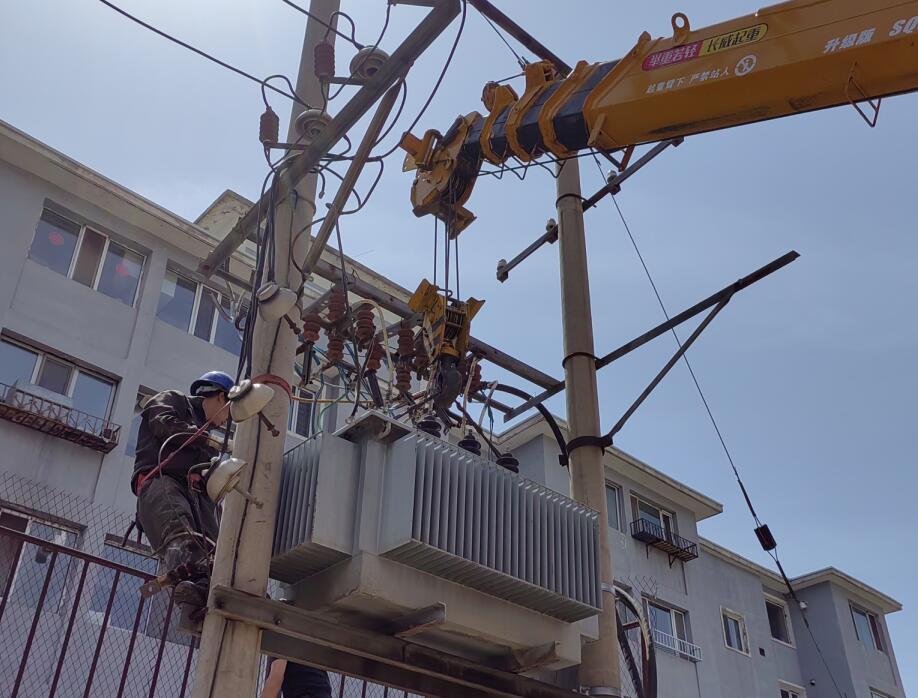 中國電力網(wǎng)訊(通訊員 李欣)“向右面一點,往下放,好……”。5月8日內(nèi)蒙古電力(集團(tuán))有限責(zé)任公司呼和浩特供電公司賽罕分公司的工作人員對10kV泰安變9613滿東線干休所民政局小區(qū)更換變壓器,以確保居民日常生活可靠用電。