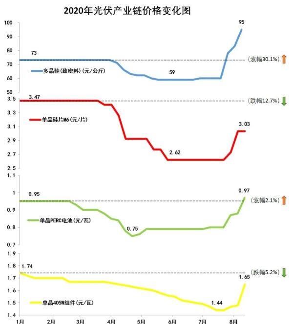 與年初相比,光伏行業(yè)各個(gè)產(chǎn)業(yè)鏈的價(jià)格究竟變化了多少呢?