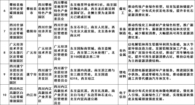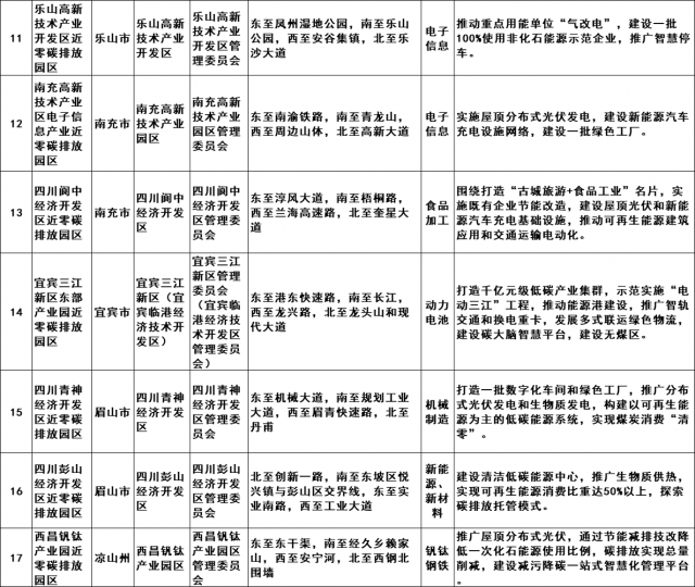 四川省近零碳排放園區(qū)試點擬確定名單(含試點園區(qū)名稱、所屬地區(qū)、所屬園區(qū)、申報主體、試點范圍、主導(dǎo)產(chǎn)業(yè)、試點特色),共17家園區(qū)。
