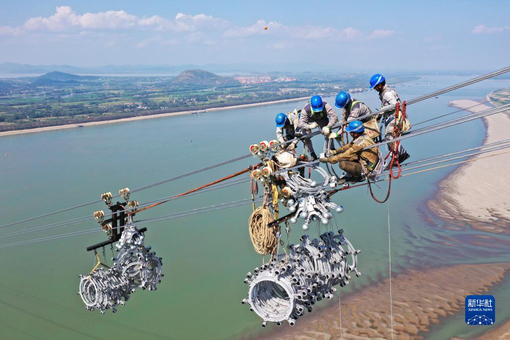 2022年9月16日,白鶴灘至浙江±800千伏特高壓直流輸電工程(白浙線)安徽段順利完成長江大跨越放線作業(yè)。