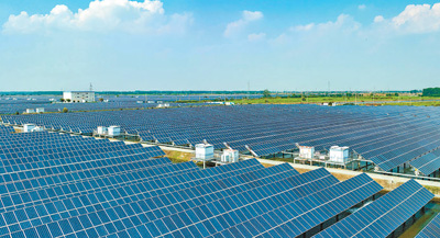 江蘇省興化市,千垛鎮(zhèn)連片的光伏發(fā)電板映襯著藍天白云,成為一道獨特風(fēng)景。